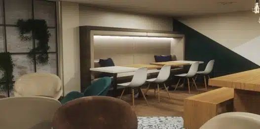 Remodelación y adecuación del primer piso del edificio para albergar la sala de esparcimiento, comedor y salas de reuniones para la sede de la Cl 93 de la compañía Indra.